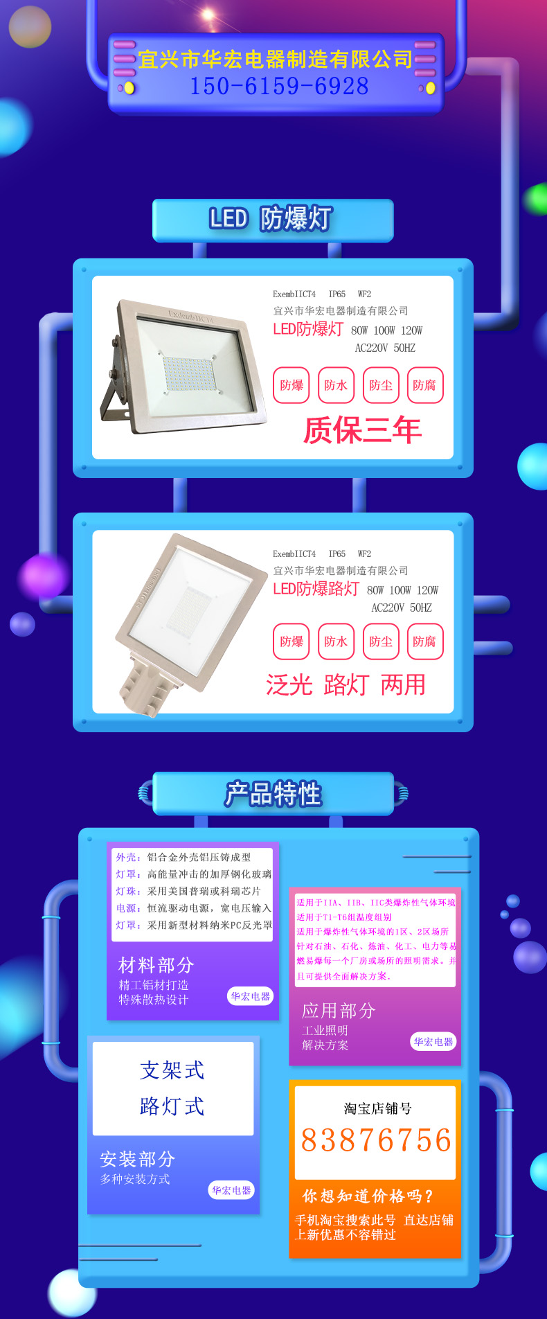防爆灯分为防爆泛光灯,防爆投光灯和圆形防爆灯和方形防爆灯,还有就是防爆等级不同的防爆灯应用场所尽不相同,有增安型(e)防爆灯,隔爆型(d)防爆灯,增安型防爆灯防爆等级为IIA,隔爆型防爆灯防爆等级有IIB级和IIC级两种,在有氢气、乙炔和二硫化碳气体环境中应选用IIC级LED防爆灯,则像乙烯气体环境中应选择IIB级防爆灯,而甲烷(沼气)等气体则选用增安型IIA类防爆灯。