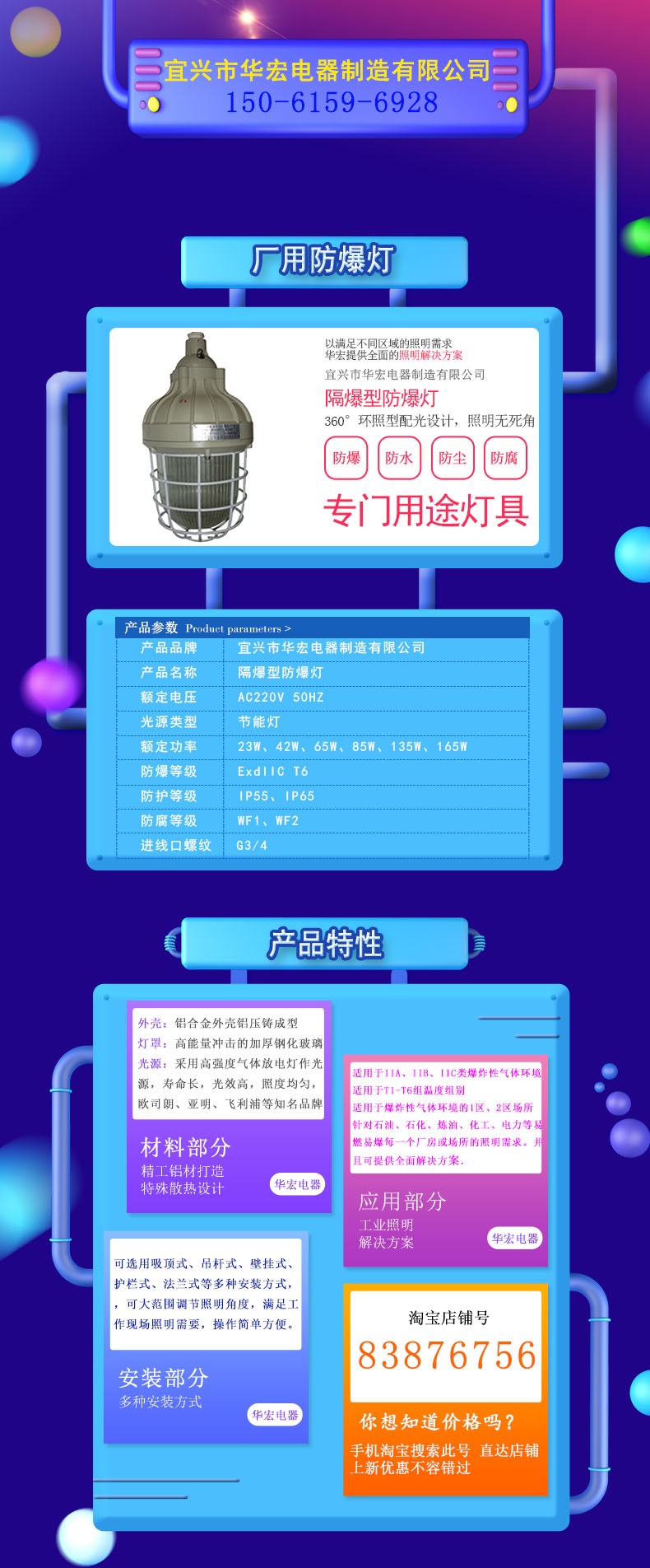 | 型号规格 | 光源类型 | 额定功率 | 额定电压 | 防爆标志 | 防护等级 | 安装方式 |