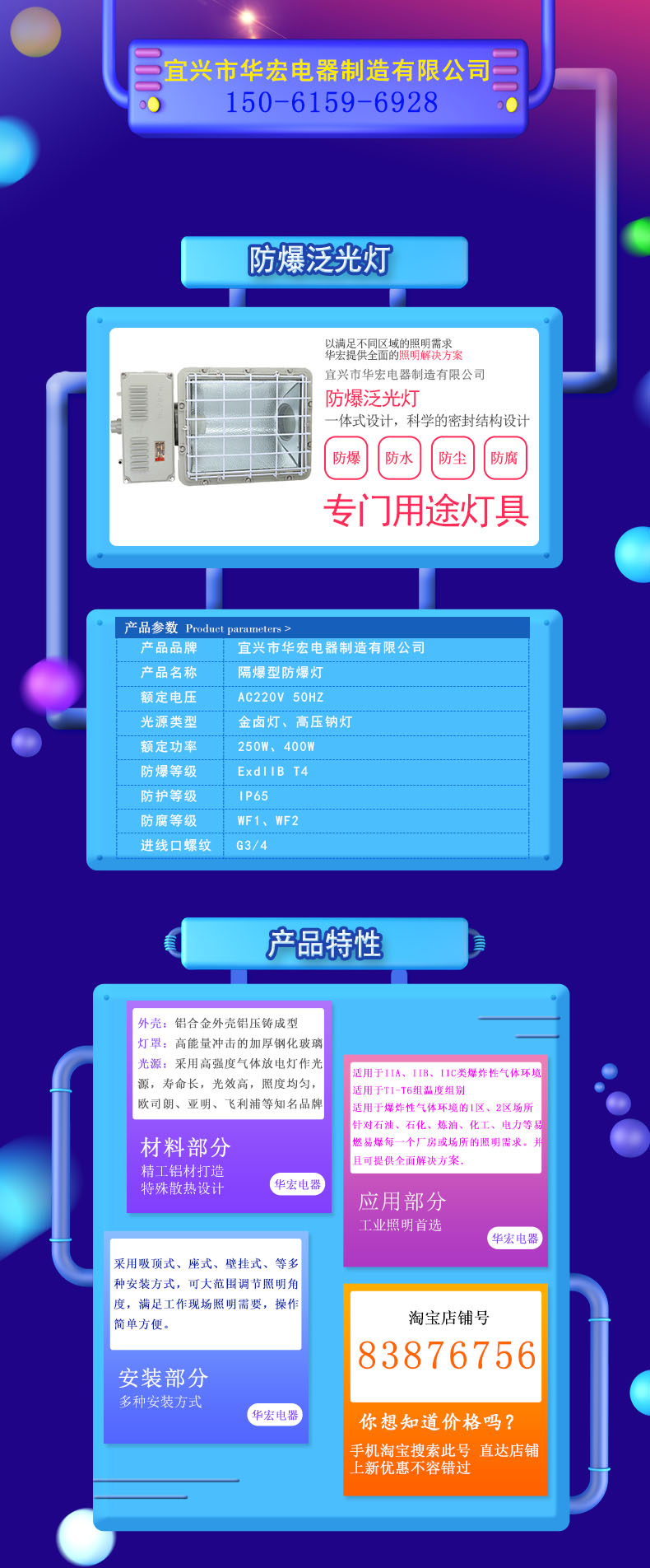 | 型号规格 | 光源类型 | 额定功率 | 额定电压 | 防爆标志 | 防护等级 | 安装方式 |