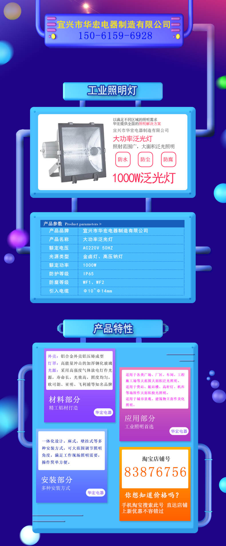 2.投光灯额定电压:220VAC 50Hz
