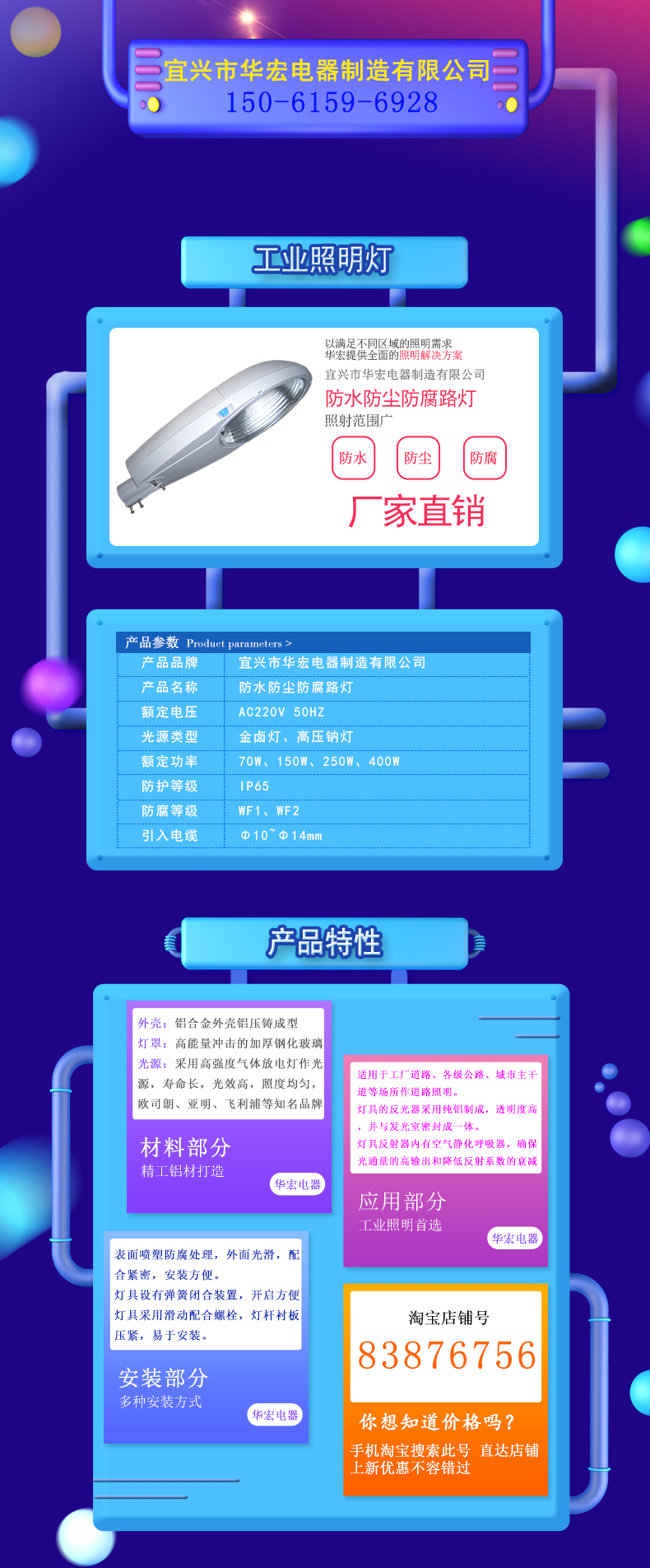 ¤ 适用于工厂道路、各级公路、城市主干道等场所作道路照明。