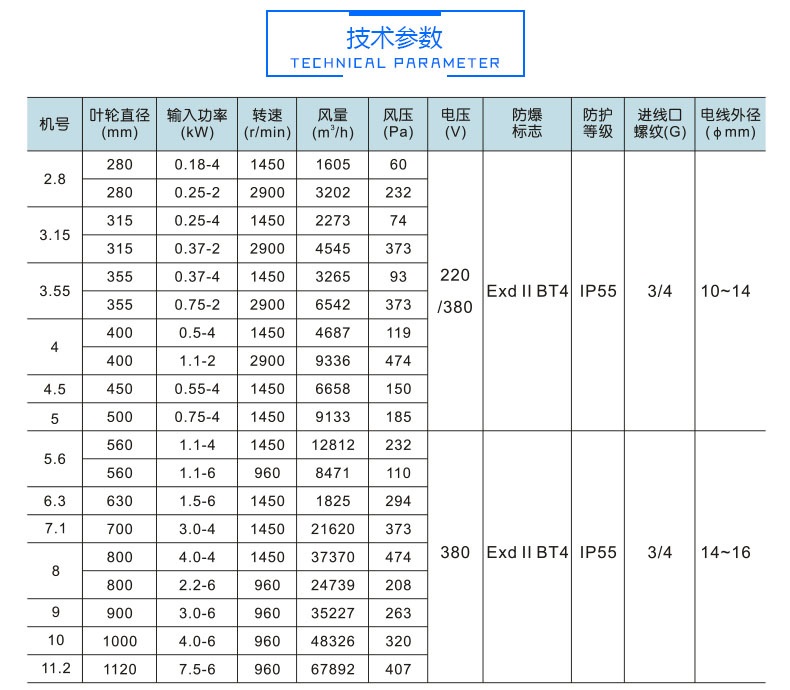 ▶ 叶轮直径/功率:300mm/0.18KW 400mm/0.37KW
